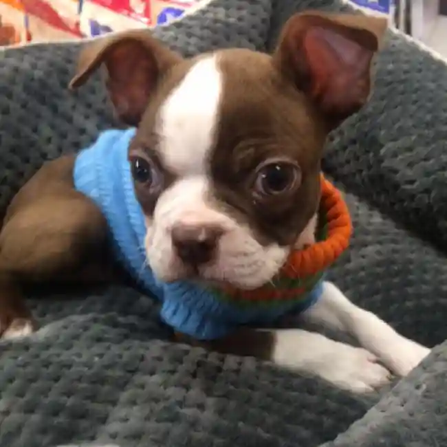 The Boston Terrier is a lively little companion recognized by his tight tuxedo jacket, sporty but compact body, and the friendly glow in his big, round eyes. His impeccable manners have earned him the nickname “The American Gentleman.”